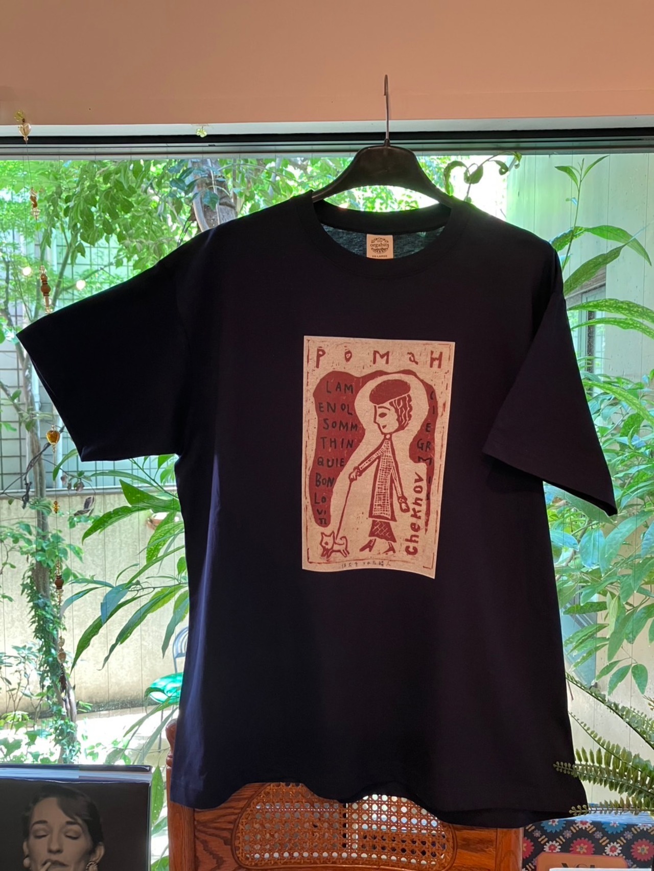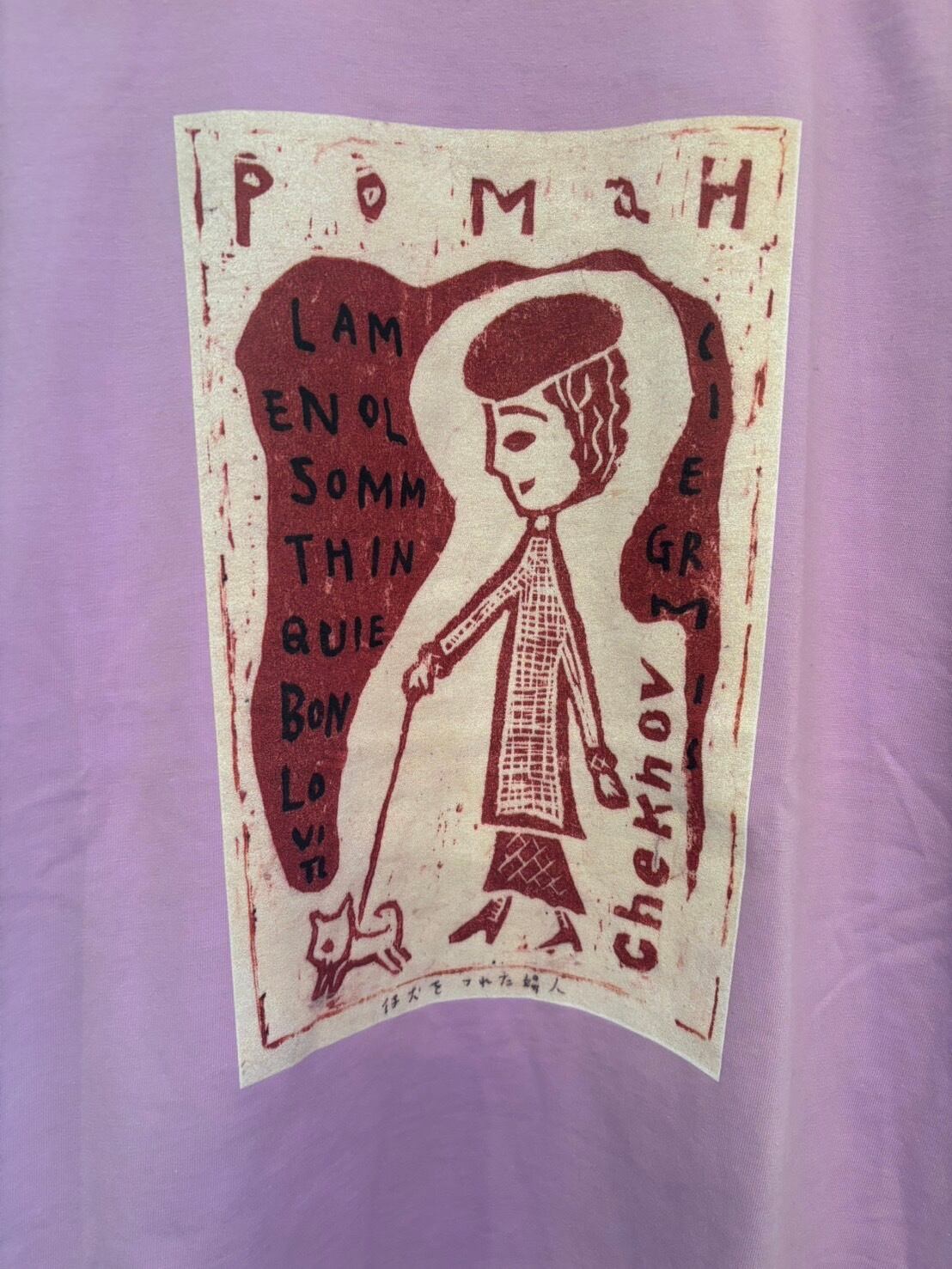 このTシャツには、チェーホフの小説「仔犬を連れた婦人」にインスピレーションを受けた、ささめやゆき氏ならではの雰囲気のあるレトロモダンな美しい版画がデザインされています。アートが日常にさりげなく溶け込む素敵なアイテムは 是非男女も年齢も超えて幅広くお愉しみいただけるのではないでせうか?